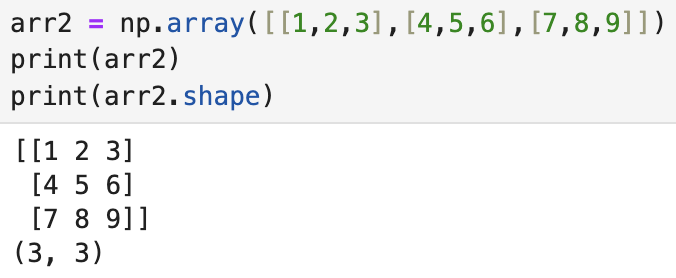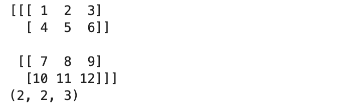 - 배열의 모양을 확인했을 때 나오는 (2,2,3)의 의미는 (2,3)의 행렬이 2개 겹쳐져있다는 뜻이다.