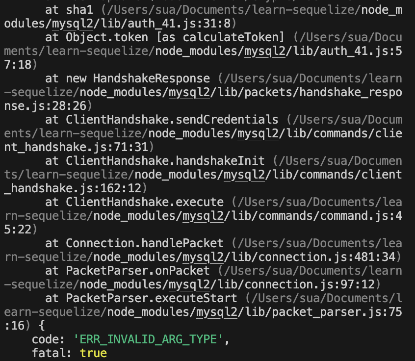 새로운 폴도 'learn-sequelize'를 만들어주고, 이전에 한 것과 같이 package.json을 만들어줍니다.